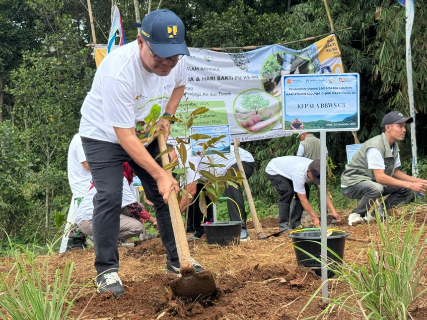 Damar Banten – Balai Besar Wilayah Sungai Cidanau, Ciujung, Cidurian (BBWS C3) menggelar kegiatan penanaman pohon dalam rangka Hari Bakti Kementerian Pekerjaan Umum di Desa Cilangkap, Kecamatan Maja, Kabupaten Lebak, Rabu (20/11/2025).