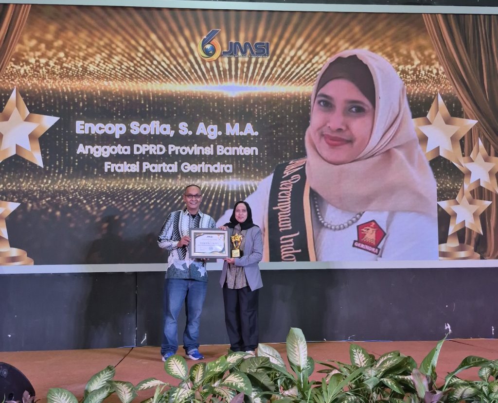 Damar Banten – Encop Sopia, Anggota DPRD Provinsi Banten Fraksi Partai Gerindra, menerima penganugerahan award yang diselenggarakan oleh Jaringan Media Siber Indonesia (JMSI) dalam rangka Hari Ulang Tahun (HUT) JMSI ke-6. Kegiatan tersebut berlangsung di Ballroom Hotel Horison Serang, Sabtu (8/2/2026).