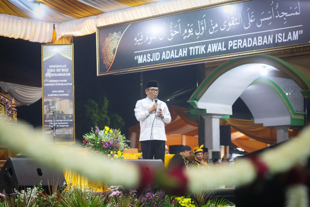 Dalam sambutannya, Andra Soni menegaskan masjid memiliki peran strategis sebagai pusat pembinaan keimanan dan persatuan umat, sekaligus pilar pembangunan peradaban Islam di Banten.