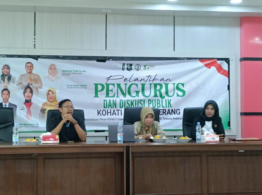 Damar Banten – Pelantikan Pengurus KOHATI Cabang Serang periode 2025–2026 M yang digelar pada Sabtu (20/9/2025), dirangkaikan dengan diskusi publik bertema “Pencegahan dan Penanganan Kekerasan Seksual”. Acara ini dihadiri oleh narasumber Kabid PPA DP3AKKB Provinsi Banten, Entin Oliantini, S.Ag., M.Si; perwakilan Disnaker Kabupaten Serang, Saptian Habib Maulida, S.Sos; dan Kanit PPA Polda Banten, IPTU Wiwi Widaningsih, S.H.