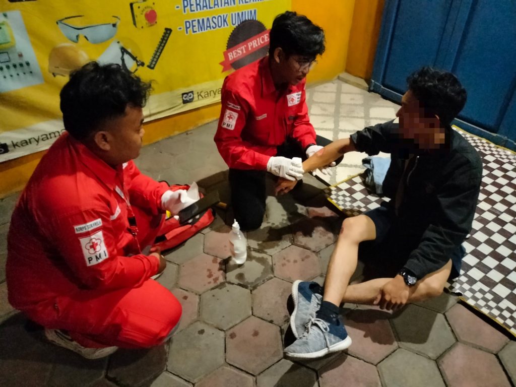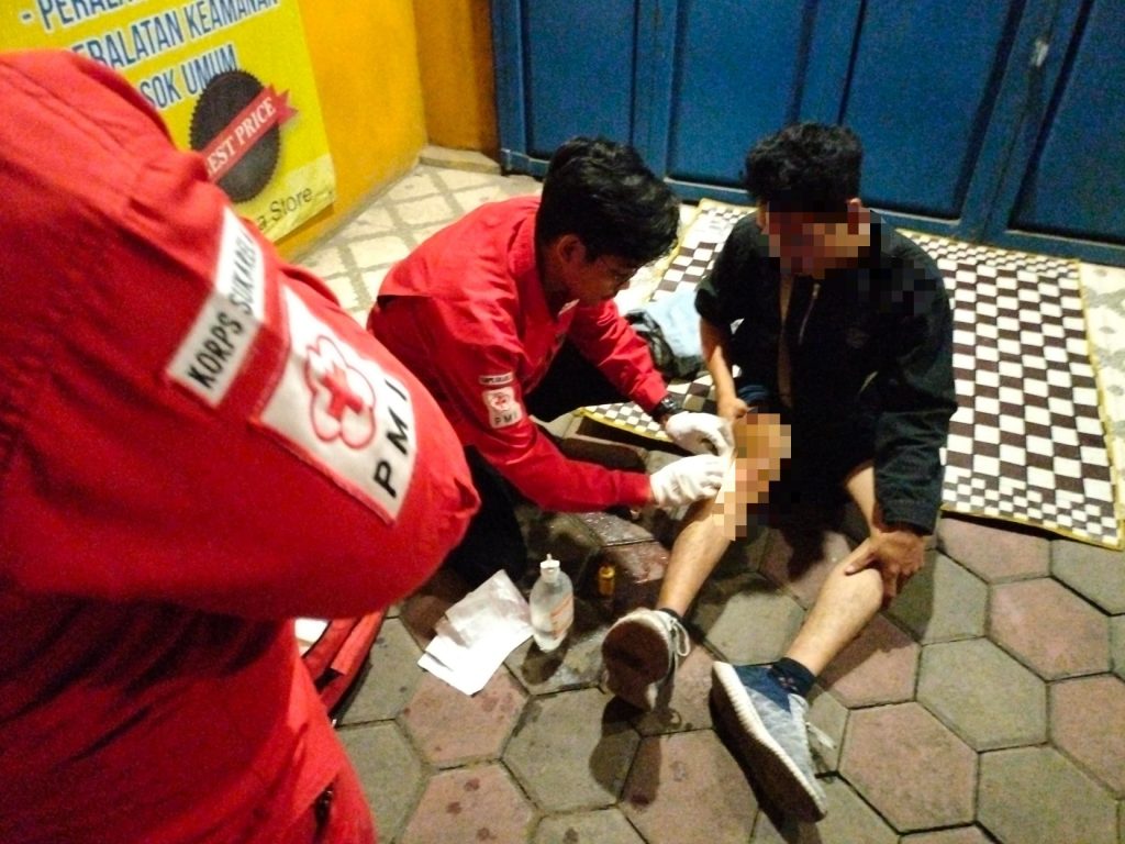 Seorang relawan mengatakan, “Kami langsung kasih pertolongan awal, habis itu dibawa ke posko biar ditangani lebih lanjut.”