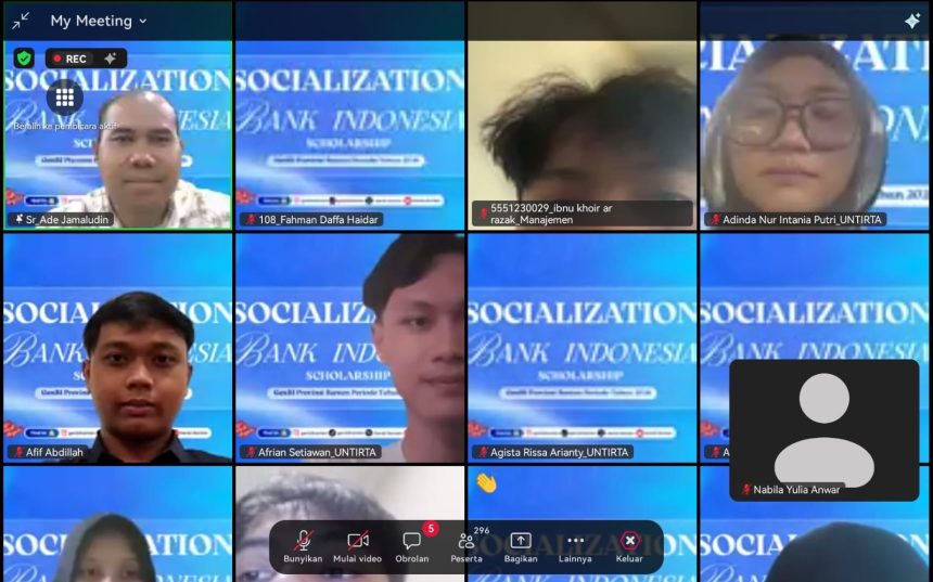 Damar Banten – Kegiatan Socialization of Bank Indonesia Scholarship (SBIS) 2026 digelar secara daring melalui Zoom Meeting pada Jumat (10/4/2026). Acara ini diikuti mahasiswa dari berbagai perguruan tinggi, seperti Universitas Sultan Ageng Tirtayasa, UIN Sultan Maulana Hasanuddin Banten, UIN Syarif Hidayatullah Jakarta, serta peserta umum lainnya.